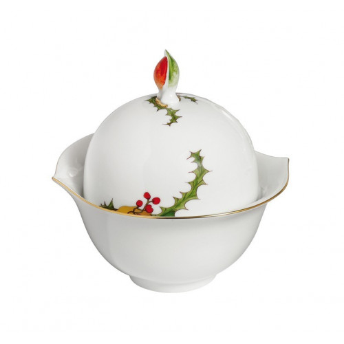 Zuckerdose, Form "Wellenspiel Pur", Stechpalme, bunt und gold, Goldrand (Relief auf Untertasse vergoldet), V 0,20 l