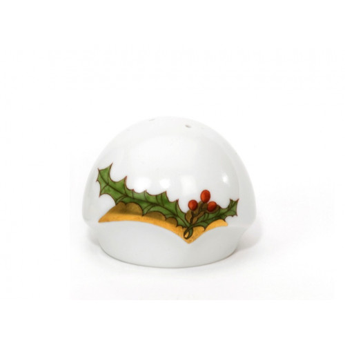 Pfefferstreuer, Form "Wellenspiel Pur", Stechpalme, bunt und gold, Goldrand (Relief auf Untertasse vergoldet), H 4 cm