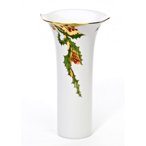 Vase, Form "Wellenspiel Pur", Stechpalme, bunt und gold, Goldrand (Relief auf Untertasse vergoldet), H 19 cm