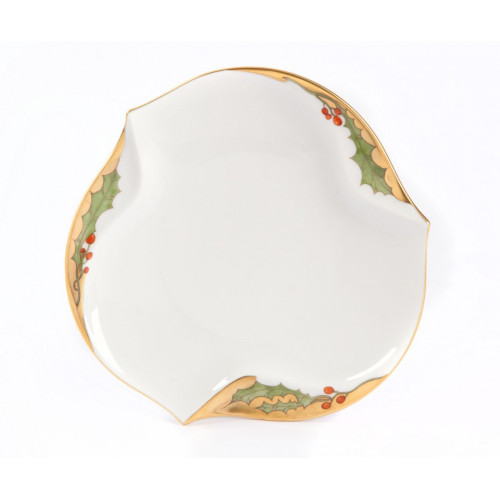 Schälchen, Form "Wellenspiel Pur", Stechpalme, bunt und gold, Goldrand (Relief auf Untertasse vergoldet), Ø 15,5 cm