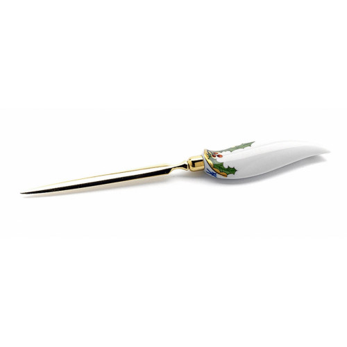 Brieföffner, Form "Wellenspiel Pur", Stechpalme, bunt und gold, Goldrand (Relief auf Untertasse vergoldet), L 19,5 cm
