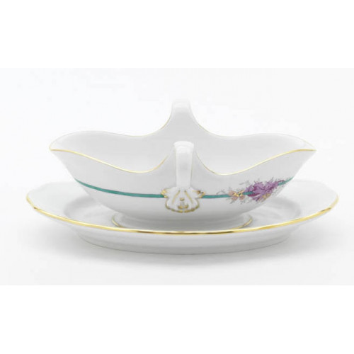 Sauciere, Form "Neuer Ausschnitt", Distel, purpur, grünes Band, Goldrand, V 0,25 l