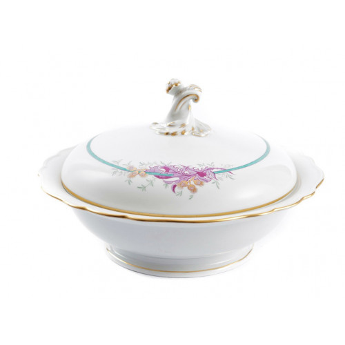 Schüssel m.D., Distel, purpur, grünes Band, Goldrand, V 1,00 l