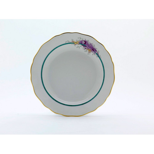 Teller, Form "Neuer Ausschnitt", Distel, purpur, grünes Band, Goldrand, ø 20 cm