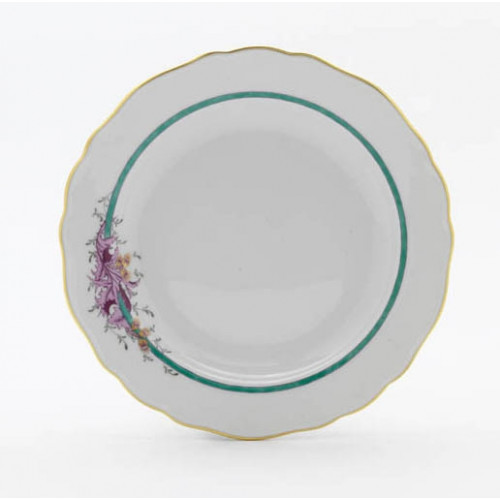 Teller, Form "Neuer Ausschnitt", Distel, purpur, grünes Band, Goldrand, ø 18 cm