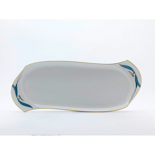 Platte, eckig, Wasservögel, türkis, Goldrand, L 43 cm