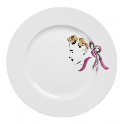 Teller, Gestreute Silhouetten,schwarz gezeichn.u.farbig ausgelegt,weißer Rand, ø 22 cm