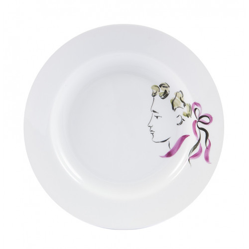 Teller, Form "Glatte Form", Gestreute Silhouetten,schwarz gezeichn.u.farbig ausgelegt,weißer Rand, ø 19 cm
