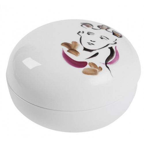 Dose, Gestreute Silhouetten,schwarz gezeichn.u.farbig ausgelegt,weißer Rand, ø 13 cm