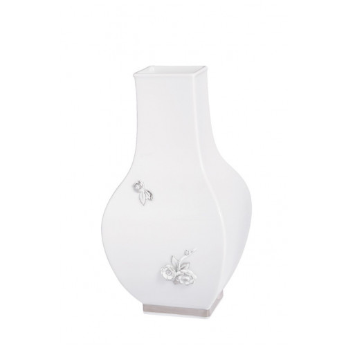 Vase, Blütenbeläge platin staffiert, Platinfaden am Fuß, H 25,5 cm