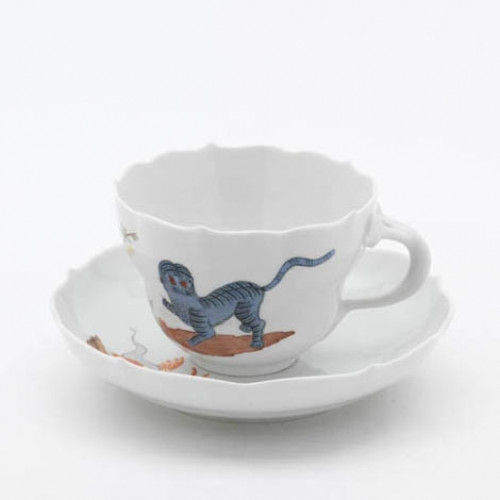 Kaffeetasse m.U., Form "Neuer Ausschnitt", Fabeltiere, leicht, bunt mit Kupferf.u.Gold, Motiv lt.Sondertext, V 0,25 l