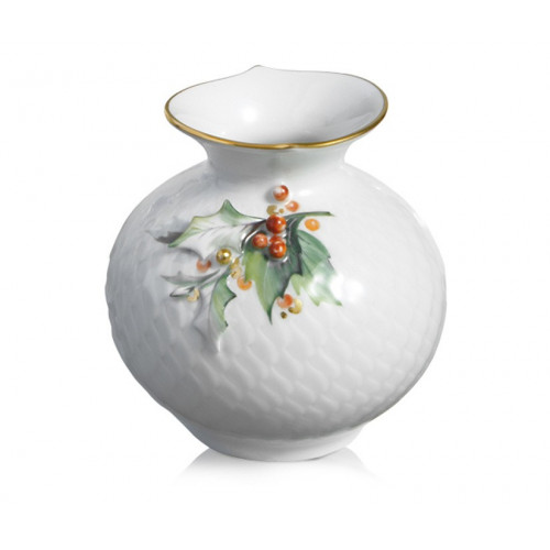 Vase Stechpalme, Bunt und gold staffiert, H 9 cm