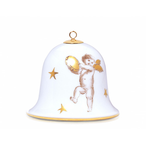 Miniatur-Glocke, Weihnachtsmotiv, Engel mit Tamburin, sepia und gold, Goldrand, H 5 cm