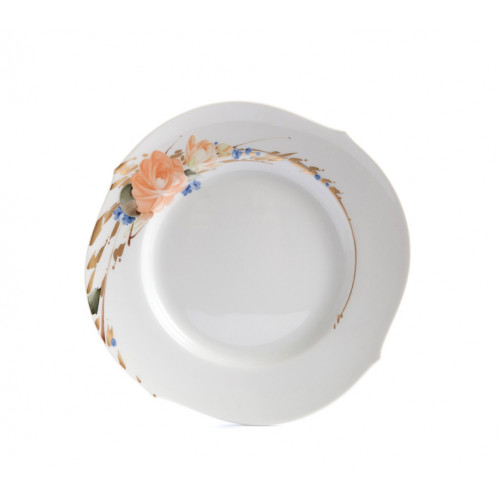 Teller, Form "Wellenspiel Pur", Begonie, farbig, Goldstrukturen, weißer Rand, ø 22,5 cm