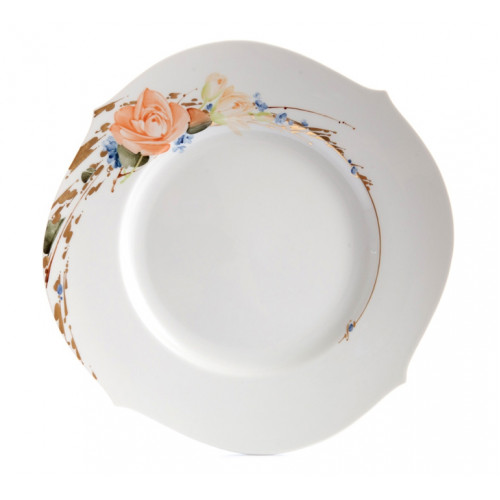 Speiseteller, Form "Wellenspiel Pur", Begonie, farbig, Goldstrukturen, weißer Rand, ø 28,5 cm
