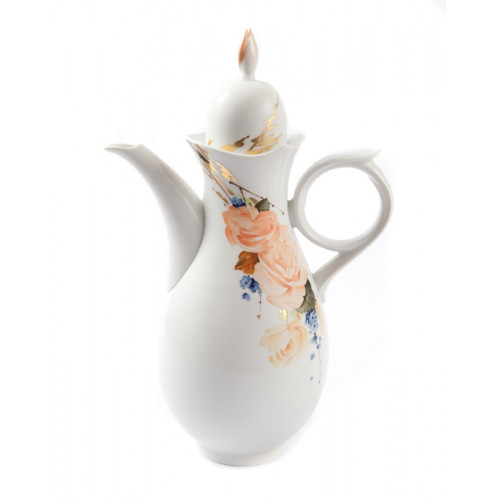 Kaffeekanne, Form "Wellenspiel Pur", Begonie, farbig, Goldstrukturen, weißer Rand, V 1,30 l
