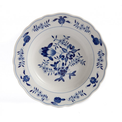 Suppenteller, Form "Neuer Ausschnitt", Orchideenmuster, ohne Kante, kobaltblau, blauer Faden, Aquatinta, ø 24 cm