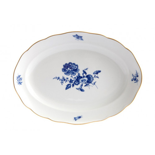 Platte, oval, Blumenbukett, kobaltblau, Goldrand, Aquatinta, L 35 cm