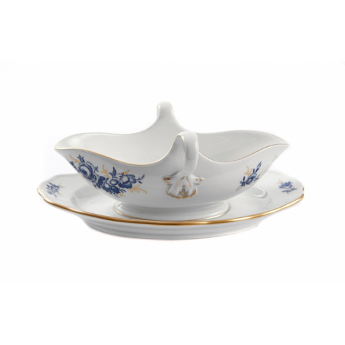Sauciere, Form "Neuer Ausschnitt", Blumenbukett, kobaltblau, Goldgräser, Goldrand, Aquatinta, V 0,25 l