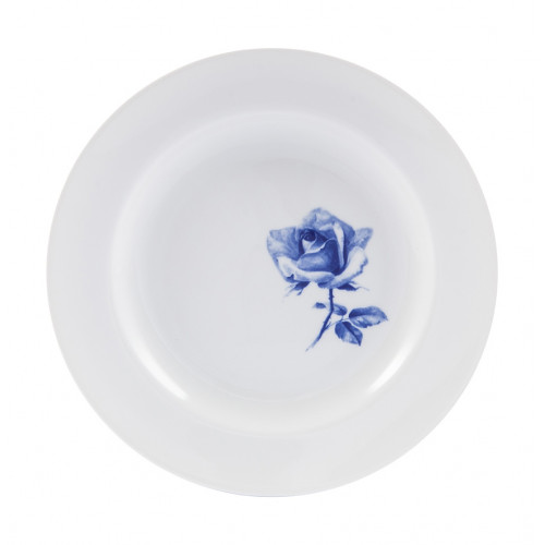 Teller, Form "Glatte Form", Rose seitlich, kobaltblau, weißer Rand, Aquatinta, ø 19 cm