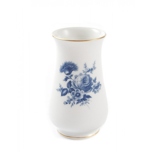 Vase, Blumenmotiv "Bukett mit Rose", schieferblau, Goldrand, Aquatinta, H 10 cm