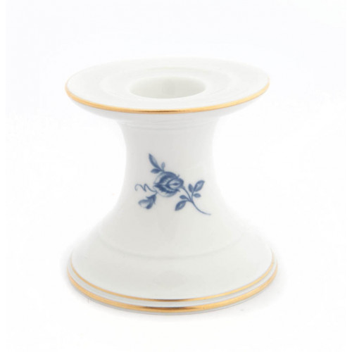Leuchter, Blumenmotiv "Bukett mit Rose", schieferblau, Goldrand, Aquatinta, H 7 cm