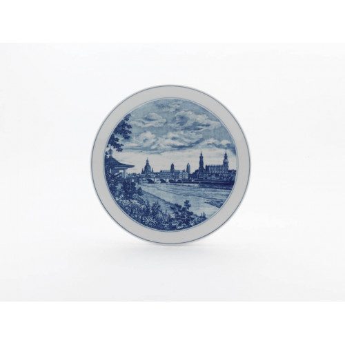 Wandschale, Dresden, Silhouette mit Frauenkirche, blauer Faden, Aquatinta,