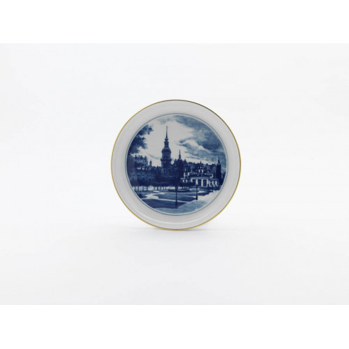 Wandschale, Dresden, Schloß, kobaltblau, blauer Faden um das Motiv, Goldrand,