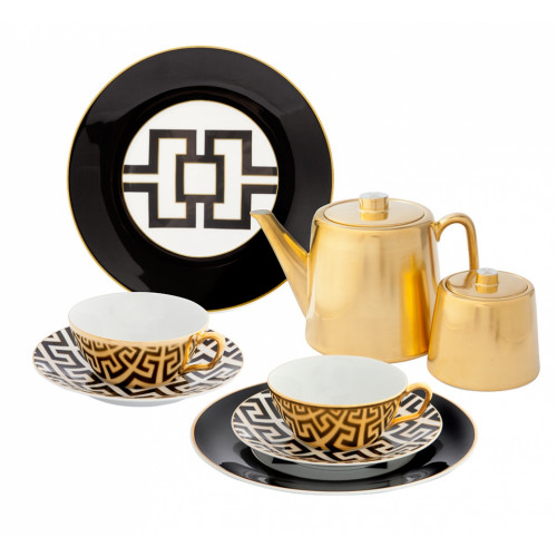 Tee-Set, Form "MEISSEN® COSMOPOLITAN", Royal Palace,schwarz mit goldener Konturweißer RandGolddekoration