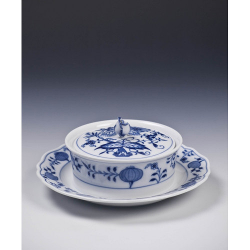 Butterdose 2-teilig, Zwiebelmuster, kobaltblau, weißer Rand, 18 cm