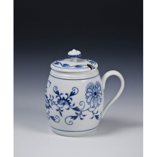 Senfgefäß m.A., Zwiebelmuster, kobaltblau, weißer Rand, 0,2 l