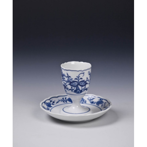 Eierbecher, Zwiebelmuster, kobaltblau, weißer Rand, H 8,5 cm