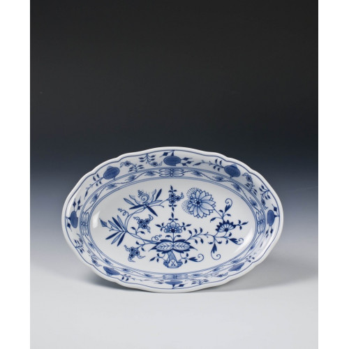 Beilageschale oval, Zwiebelmuster, kobaltblau, weißer Rand, L 25 cm