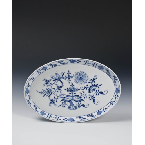 Platte, oval, Zwiebelmuster, kobaltblau, weißer Rand, 27 cm