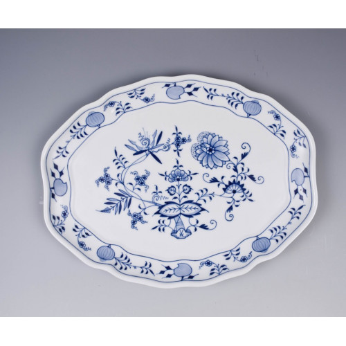 Platte, oval, Zwiebelmuster, kobaltblau, weißer Rand, 37 cm
