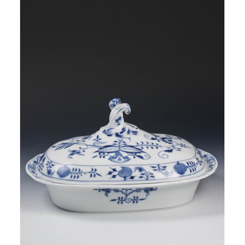 Gemüsenapf, eck., Zwiebelmuster, kobaltblau, weißer Rand, 32,5 cm
