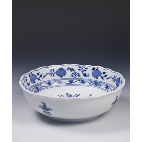 Schüssel, rund, Form "Neuer Ausschnitt", Zwiebelmuster, kobaltblau, weißer Rand, ø 22,5 cm
