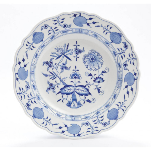 Schüssel, flach, Zwiebelmuster, kobaltblau, weißer Rand, 30 cm