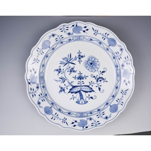 Schüssel, flach, Zwiebelmuster, kobaltblau, weißer Rand, 40 cm