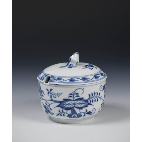 Zuckerdose m.A., Zwiebelmuster, kobaltblau, weißer Rand, 12 cm