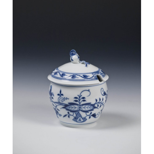 Zuckerdose m.A., Zwiebelmuster, kobaltblau, weißer Rand, 9 cm