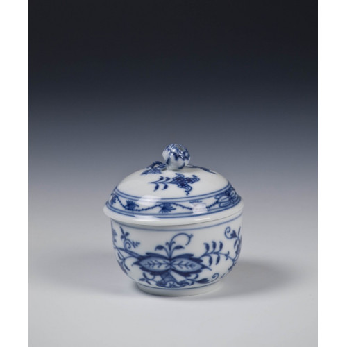 Zuckerdose, Zwiebelmuster, kobaltblau, weißer Rand, 7,5 cm