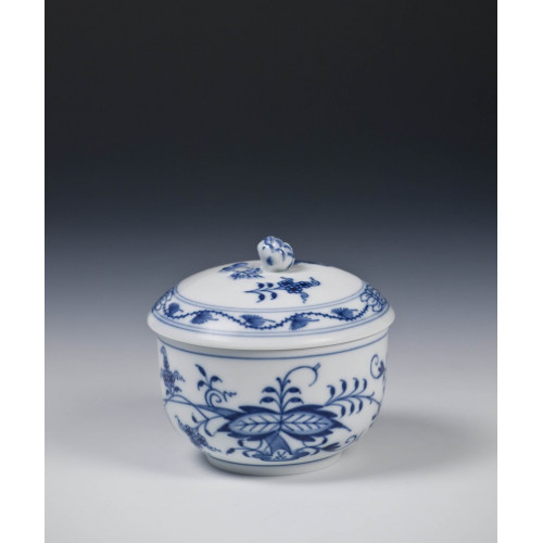 Zuckerdose, Zwiebelmuster, kobaltblau, weißer Rand, 10 cm