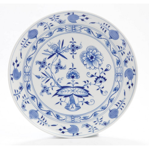 Kuchenschale rund, Form "I-Form", Zwiebelmuster, kobaltblau, weißer Rand, ø 28 cm