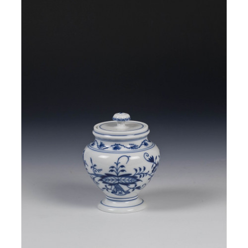 Zuckerdose, Zwiebelmuster, kobaltblau, weißer Rand, 8,5 cm