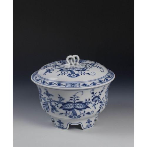 Keksdose, Form "Paris", Zwiebelmuster, kobaltblau, weißer Rand, 22 cm