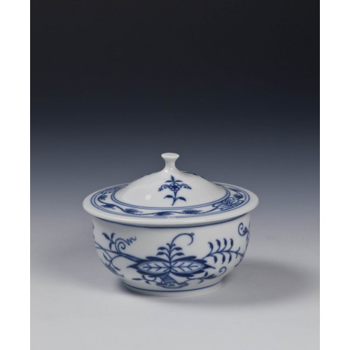 Dose,rund, Zwiebelmuster, kobaltblau, weißer Rand, 10,5 cm