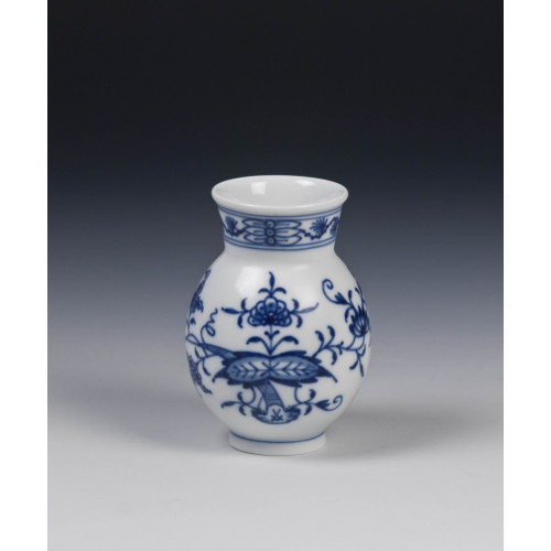 Vase, Zwiebelmuster, kobaltblau, weißer Rand, H 8,5 cm