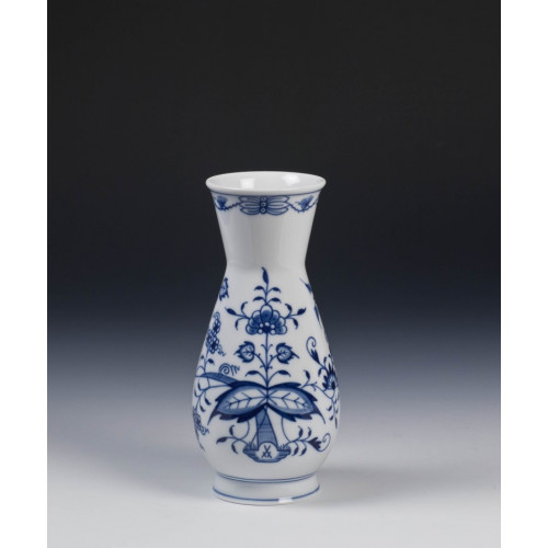Vase, Zwiebelmuster, kobaltblau, weißer Rand, H 16,5 cm