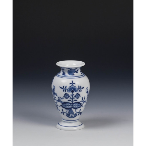 Vase, Zwiebelmuster, kobaltblau, weißer Rand, H 11 cm